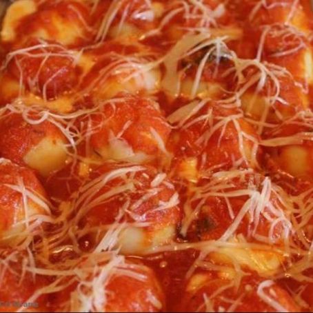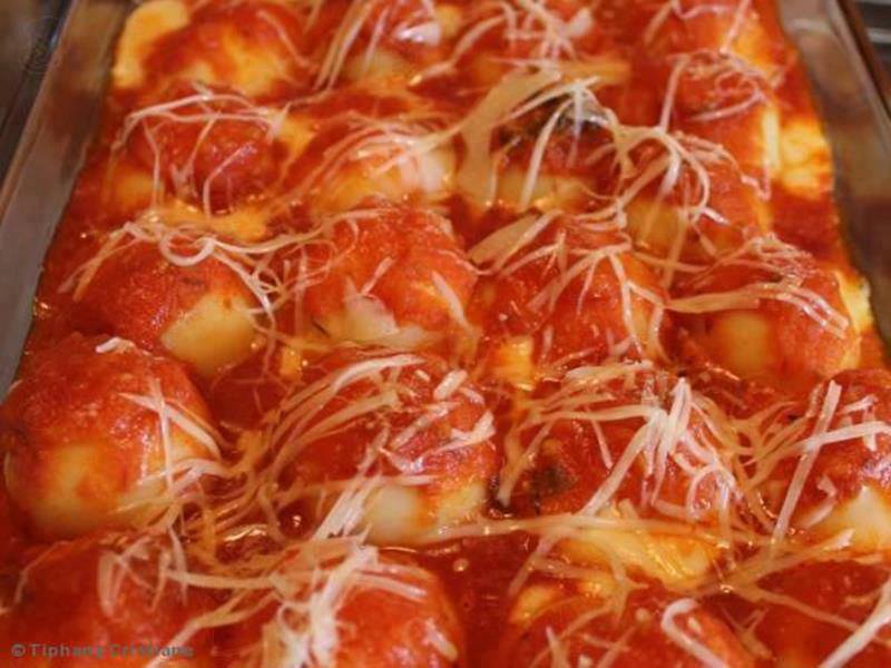 Distribua em um refratário grande, cubra com o molho de tomate e polvilhe o queijo ralado.