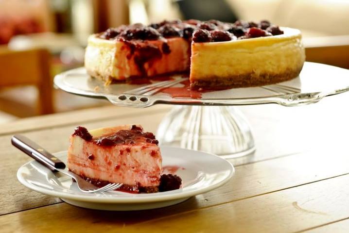 Para servir, tire o cheesecake da geladeira e desenforme-o, usando uma faca ou uma espátula para ajudar a tirá-lo da base.