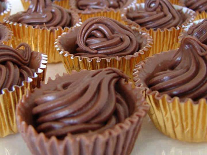 Observe que deve ficar apenas uma camada fina de chocolate dentro das forminhas.
