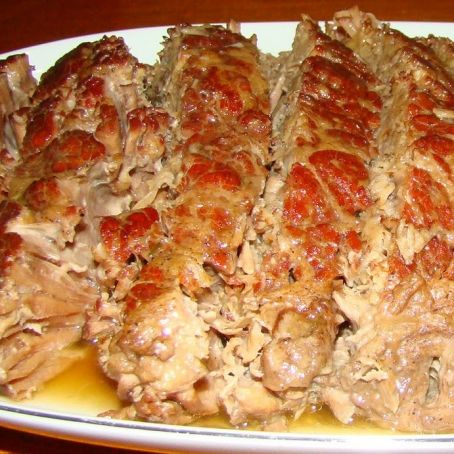 Retire a carne da panela e coloque em uma assadeira com a cebola em rodelas