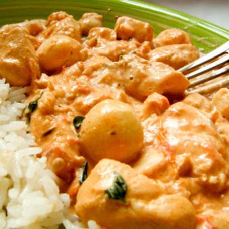 Desligue o fogo e adicione o creme de leite, mexendo bem para que fique um molho homogêno. Sirva a seguir.