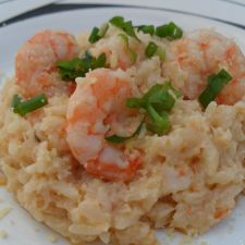 Quando o arroz tiver no ponto, juntar com o camarão, o queijo ralado, o catupiry, a salsinha e acertar o sal. Prontinho!