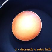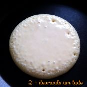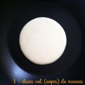 2. Em uma frigideira antiaderente, coloque mais ou menos 2 colheres (sopa) de massa, sem espalhar.