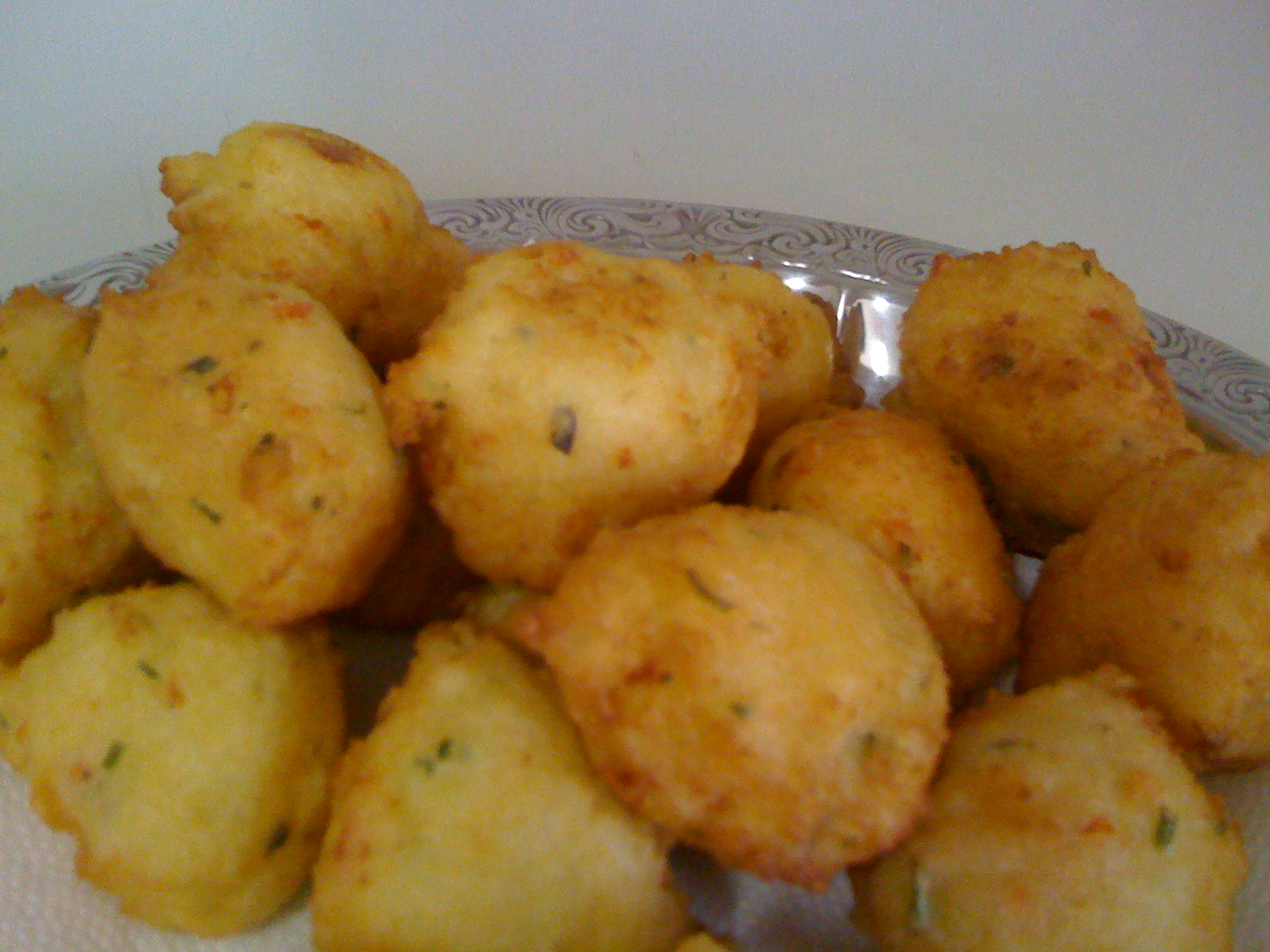 Despeje em uma vasilha, e adicione todos os outros ingredientes (com exceção do fermento), misture bem. Adicione a farinha de trigo até que dê o ponto (o ponto é quando é possível moldar os bolinhos com o auxílio de uma colher, e a massa não cai mais dela). Misture o fermento somente na hora de fritar.