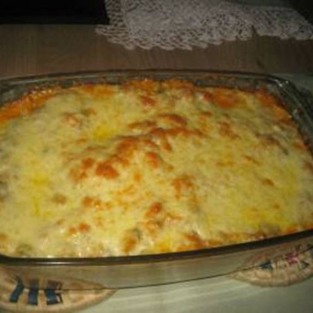 Pega-se o macarrão refogado na manteiga, depois misture todos os ingredientes ao macarrão