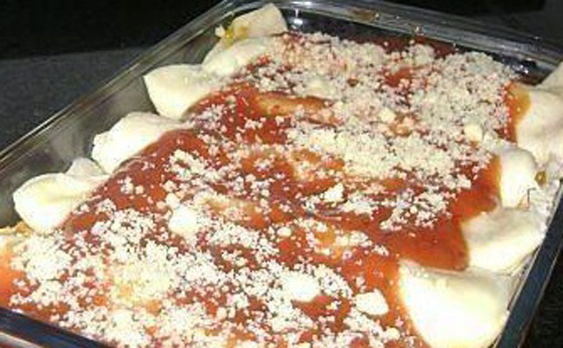 Coloque as panquecas já prontas no refratário e despeje sobre elas o resto do molho