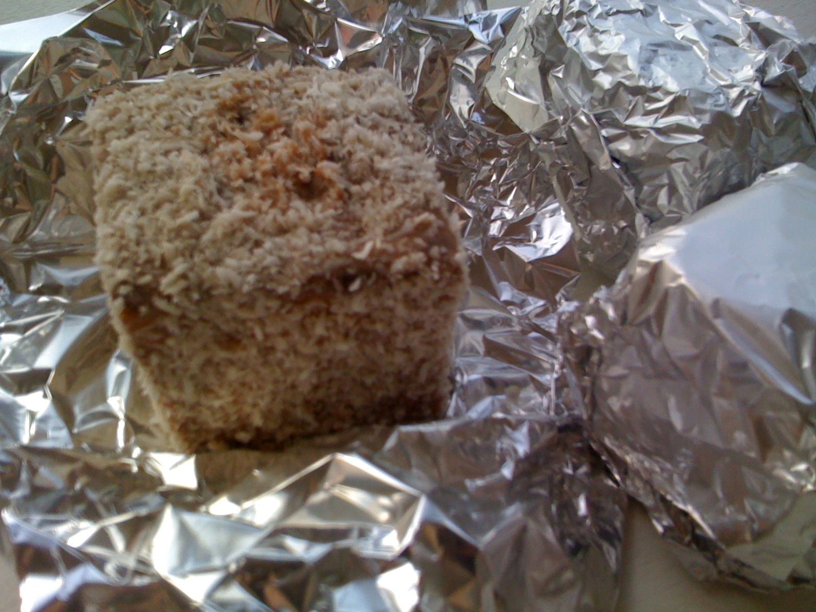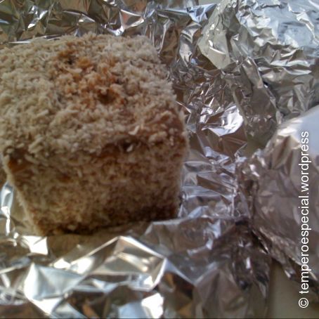 Montagem do bolo: Cortar o bolo em pedaços. Passar no creme, e depois no coco. Enrole em papel alumínio, e congele por até três meses.