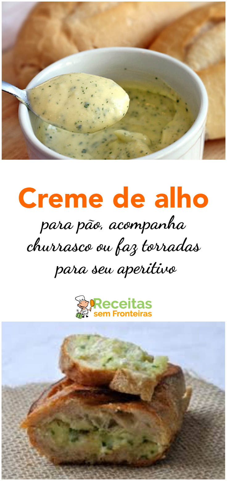 Use esse creme de alho para passar nas carnes ou para fazer pão de alho caseiro, faça cortes no pão francês em várias fatias, superficialmente;