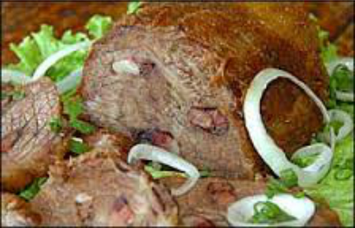 ABRIR UMA BOLSA NA CARNE, E FAZER CAMADAS DOS INGREDIENTES DENTRO DA CARNE. FECHAR A BOLSA COM LINHA OU PALITO. PASSAR BASTANTE SAL GROSSO POR FORA.EMBRULHAR COM O CELOFANE DANDO UMAS TRÊS VOLTAS E LEVAR PARA ASSAR POR APROXIMADAMENTE 03 HORAS E MEIA NO FORNO EM FOGO MÉDIO. RETIRAR O CELOFANE E DEIXAR POR MAIS MEIA HORA PARA DOURAR.