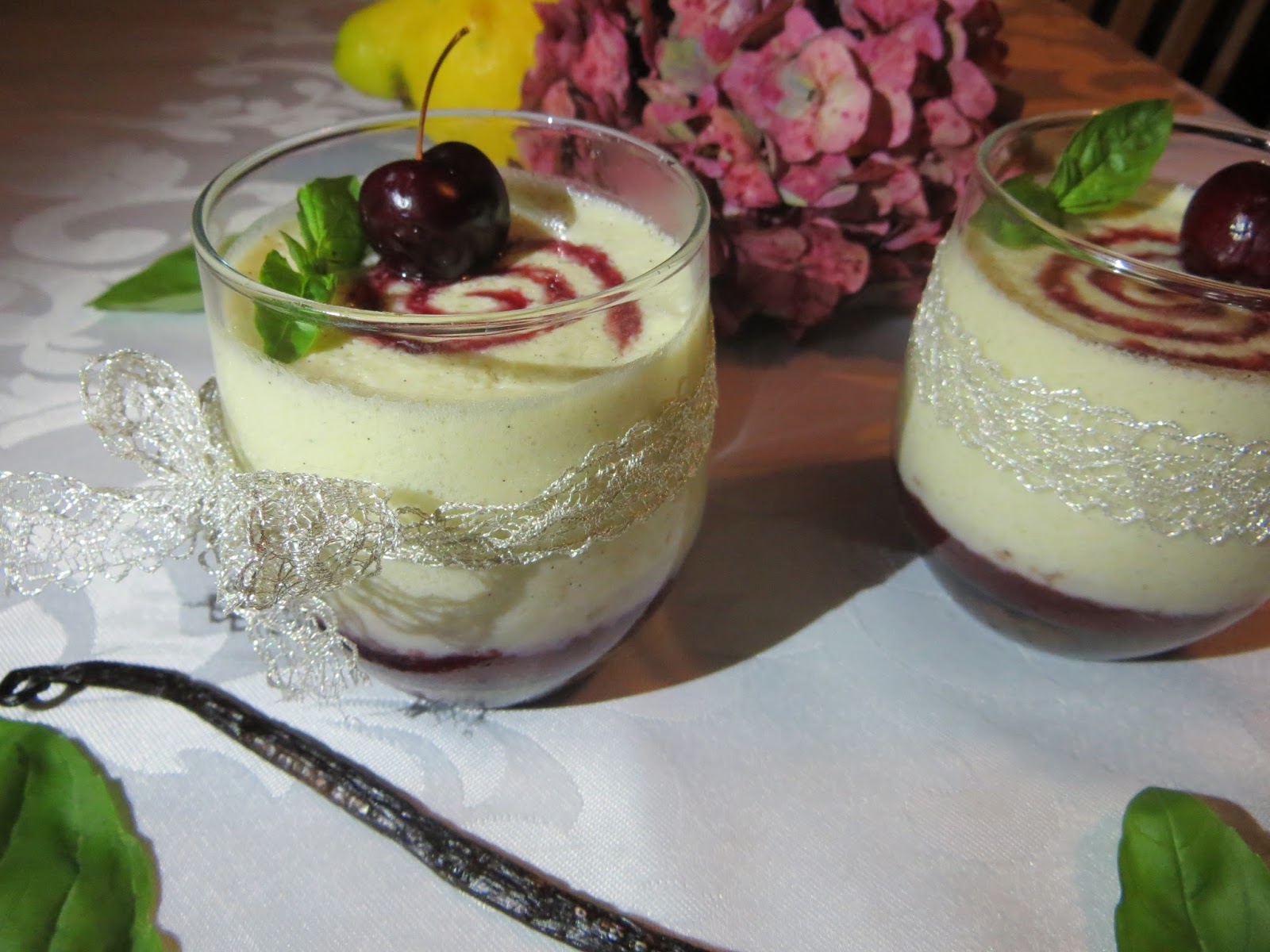 Tinha umas cerejas e umas folhas de manjericão no frigorífico e deu-me vontade de criar uma sobremesa diferente e ao mesmo tempo refrescante. Esta é a minha sugestão de hoje.