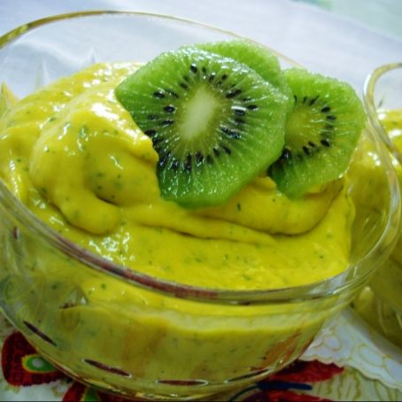 Nada mais simples! No liquidificador bata as mangas, o leite de coco, o suco e as folhas de hortelã. Adoce a gosto.