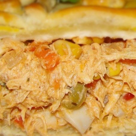 Com o restante da massa que sobrou, forme uma tampa e cubra todo o empadão, não deixe buracos