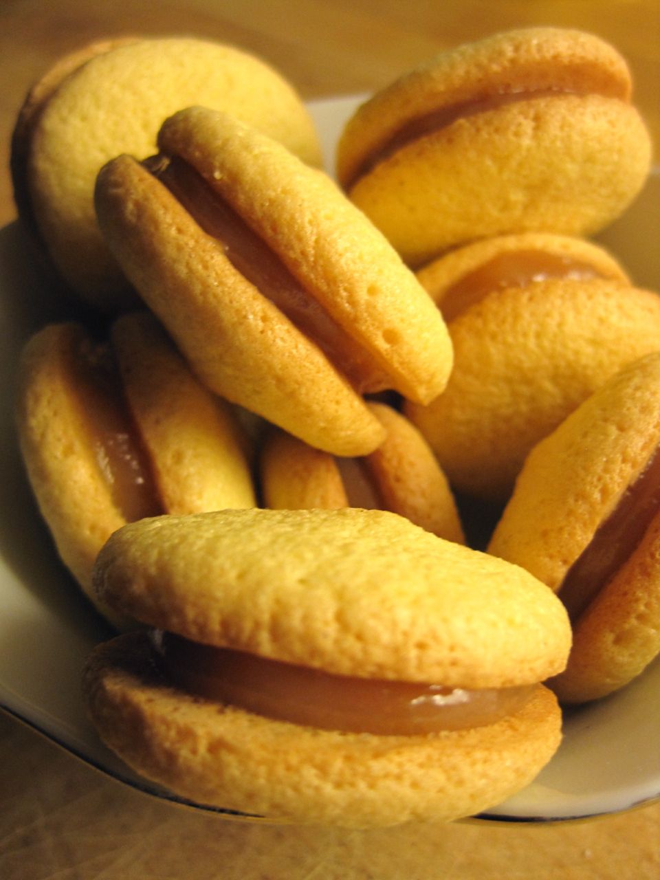 Una os biscoitos com goiabada derretida, doce de leite ou com geleia, passe no açúcar de confeiteiro ou refinado.