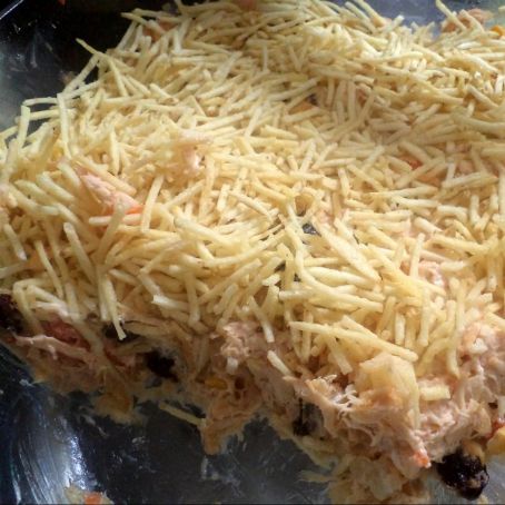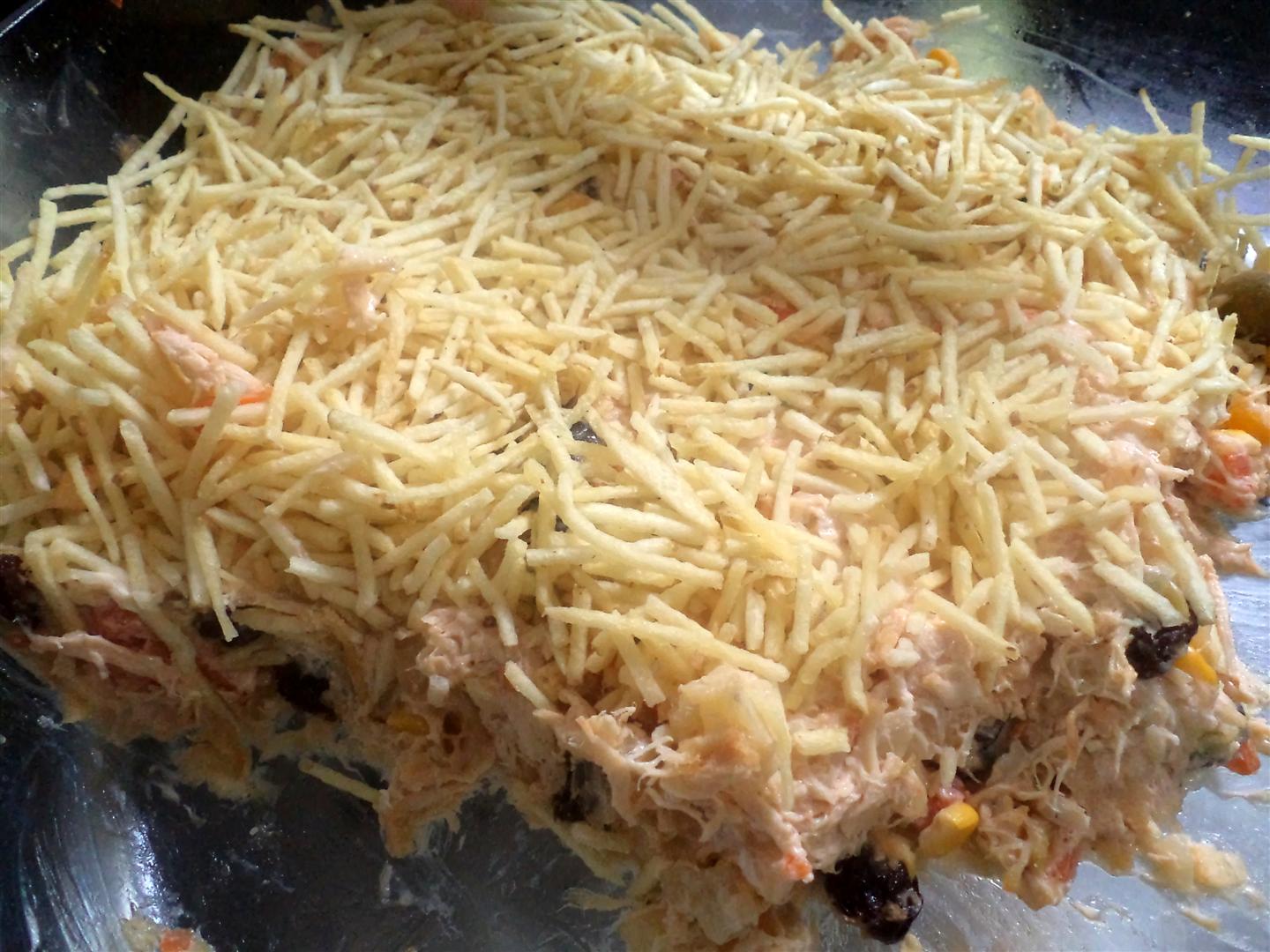 Cozinhe o frango com tempero desejado, depois de frio desfie o frango e reserve;