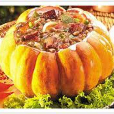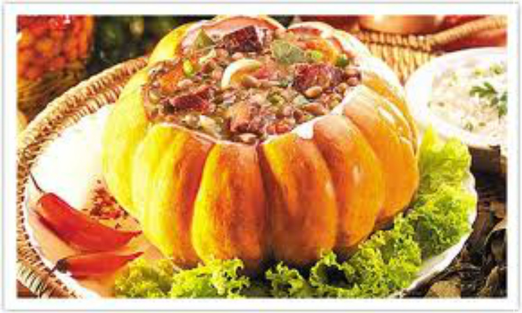corte uma tampa na moranga. tire as sementes. coloque o creme na moranga. pincele a moranga por fora com óleo, embrulhe com papel alumínio.