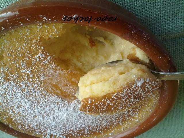 até crescer ligeiramente e ficar dourado,insere-se uma faca no centro -os dois terços superiores devem ter a consistência de souflê e o fundo deve ficar cremoso, se estiver demasiado mole deixa-se mais 5 minutos.