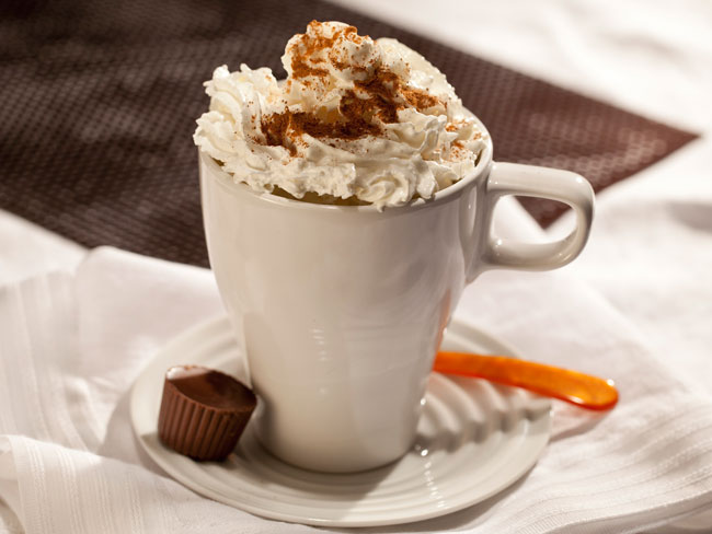 O mocaccino é uma bebida quente típica da Itália composta de cappuccino, creme e chocolate, misturado com cacau em pó.