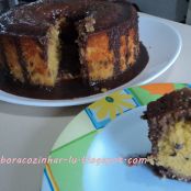 Levar os ingredientes da calda em fogo brando até dar o ponto. Retirar bolo do forno e fazer buracos com um garfo em sua superfície para que a calda entre na massa.