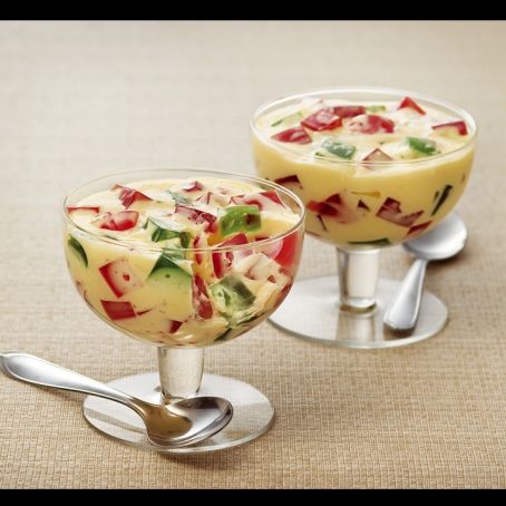 prepare cada gelatina em recipientes separados leve na geladeira,quando a gelatina estiver firme corte em cubos e reserve.