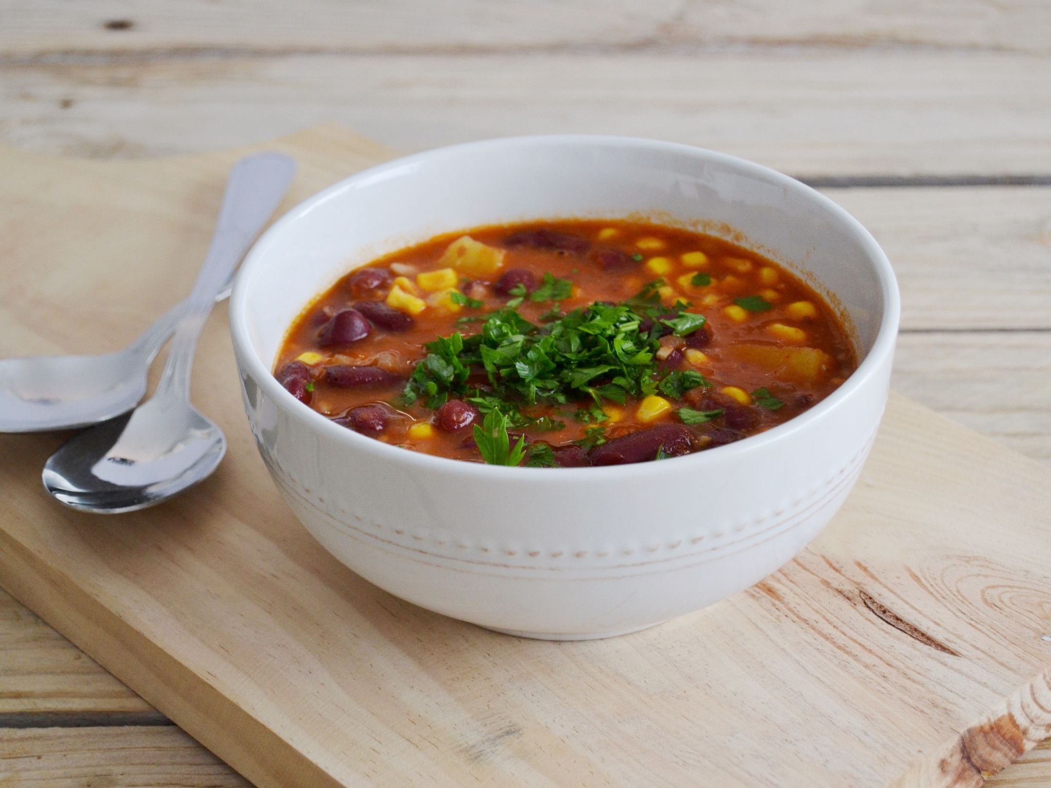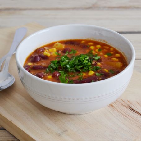 Sirva o chilli bem quente em uma cumbuca de sopa.
