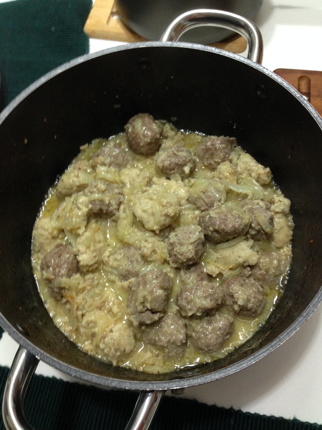 Não mexer muito, para as almôndegas não desmancharem.