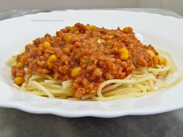 Macarrão com molho bolonhesa de soja
