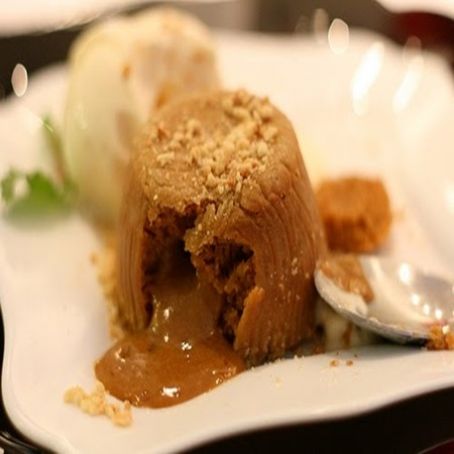 Bata os ovos, a farinha e o açúcar em uma tigela com fundo redondo. Em uma panela, em banho- maria, derreta a manteiga e o doce de leite.Junte tudo e bata no mixer. Unte as formas com manteiga e farinha e deposite a massa. Deixe descansar por duas horas na geladeira.Asse no forno a 200 º, por 8 minutos. Em um prato pequeno, desenforme o vulcano. Sirva com sorvete.
