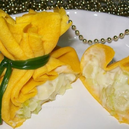 A massa é feita com cenoura e o recheio de alho poró, leve e saudável.