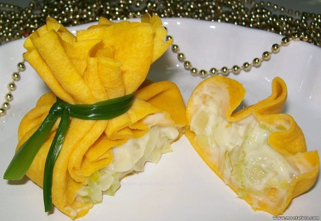 Monte as trouxinhas e amarre com a cebolinha amolecida.
