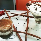 Monte em uma vasílha, alternando as camadas, arroz doce, ganash, arroz doce e ganash e por fim coloque a calda de café.