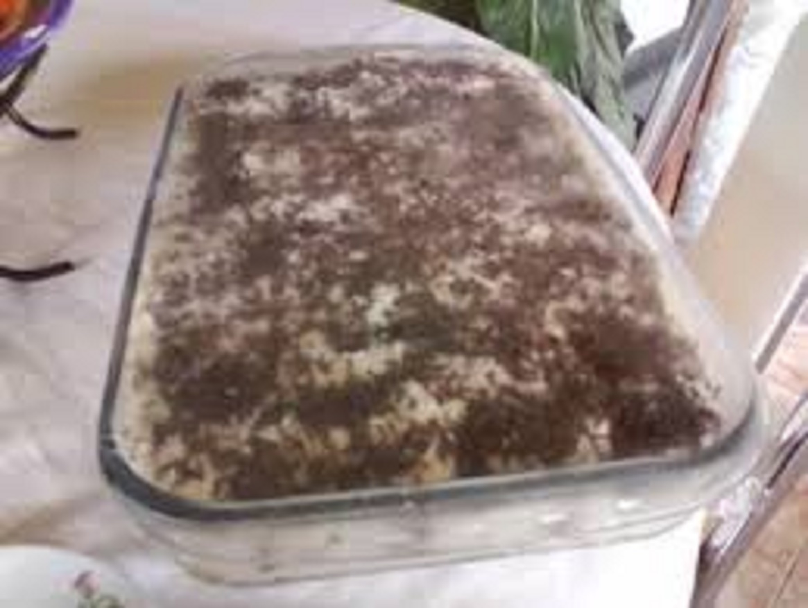 Coloque-os por cima do creme e leve a geladeira por 6 horas.Polvilhe o achocolatado .