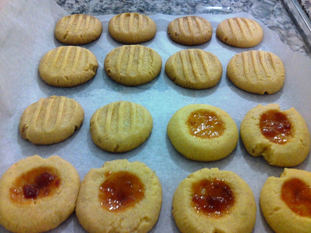 Faça pequenas bolinhas achatadas com o tamanho de uma moeda grande. Disponha os biscoitinhos em assadeiras untadas com manteiga, com um espaço entre elas.