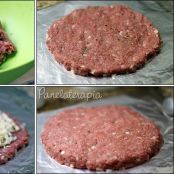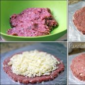 Com metade da carne faça um círculo não muito alto. Espalhe queijo muçarela ralado no centro e cubra com a outra metade da carne, unindo bem nas extremidades para não abrir. Repare que fica quase da altura de um hambúrguer. Grelhe a carne dos dois lados em frigideira antiaderente.