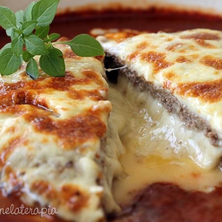 Em um refratário ou qualquer recipiente que possa ir ao forno, espalhe uma camada de molho de tomates que pode ser caseiro ou industrializado, coloque o polpettone no centro, cubra com mais queijo ralado e leve para gratinar em forno pré aquecido em 200°.