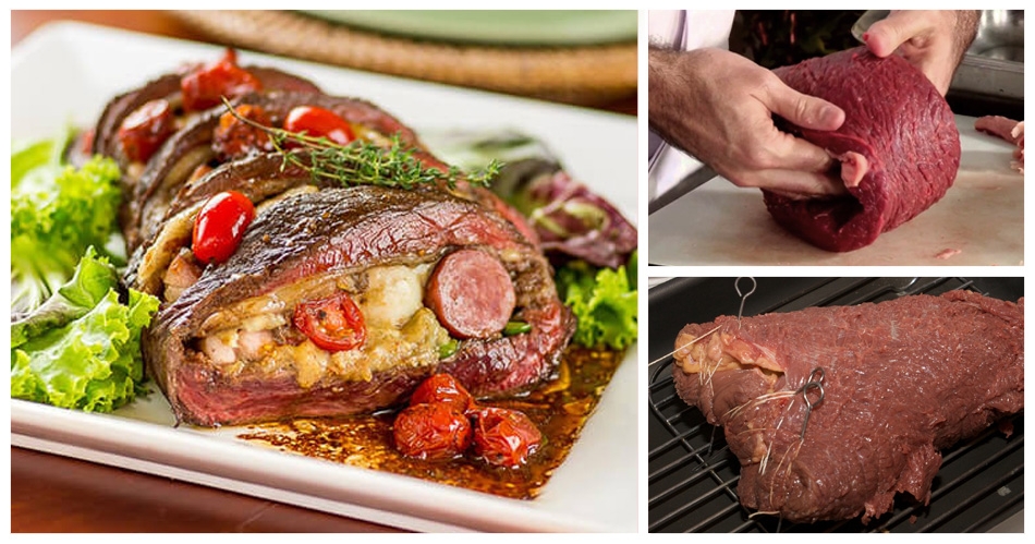 1. Fure a picanha no sentido diagonal, deixando 1,5 cm nas laterais