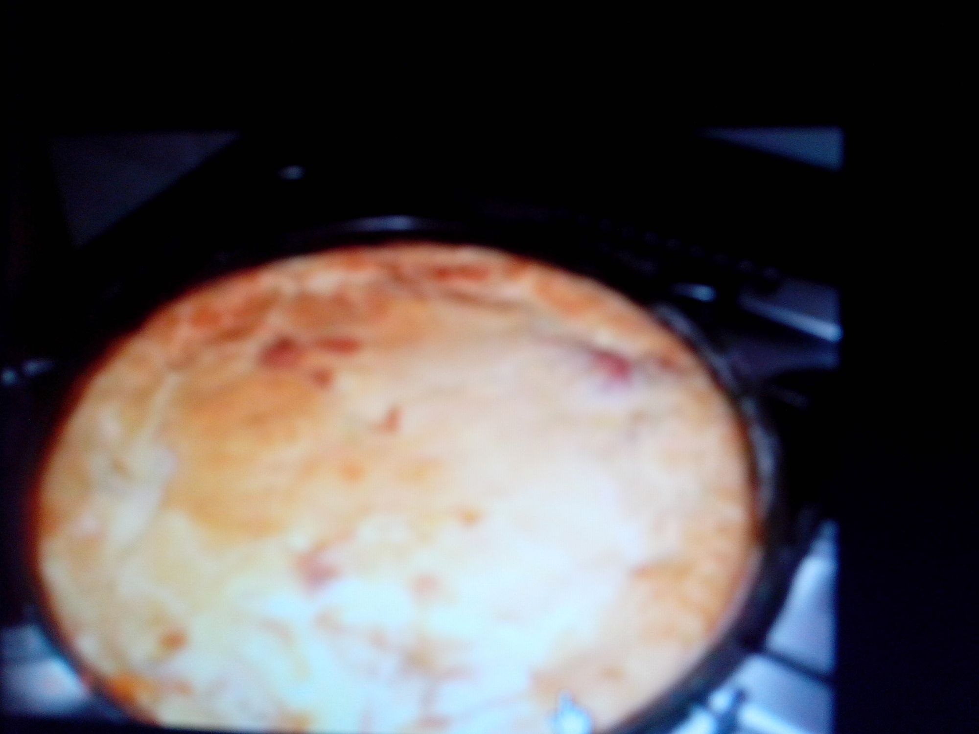 Despeje metade da massa, espalhe o recheio e coloque o restante da massa.