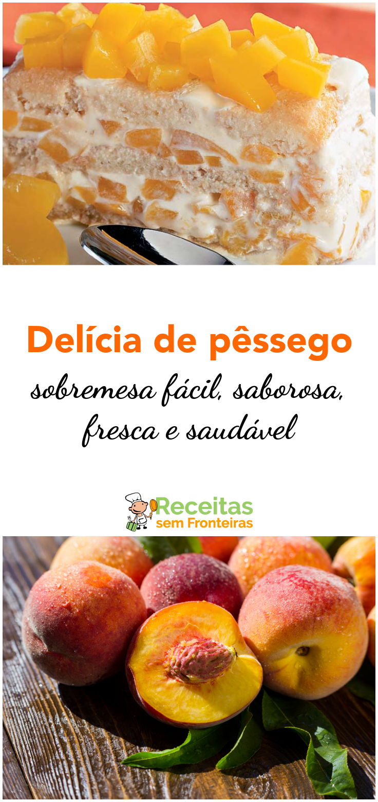 Forre o fundo com pêssegos picados em tiras (reserve a calda)