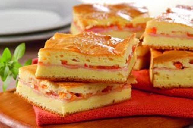 Coloque metade em uma forma untada, recheio a gosto, a outra metade cubra o recheio e asse.