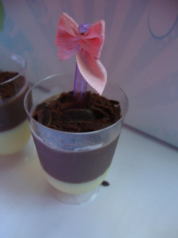 • Coloque metade do creme branco no copinho e complete com o creme preto, ou vice e versa.