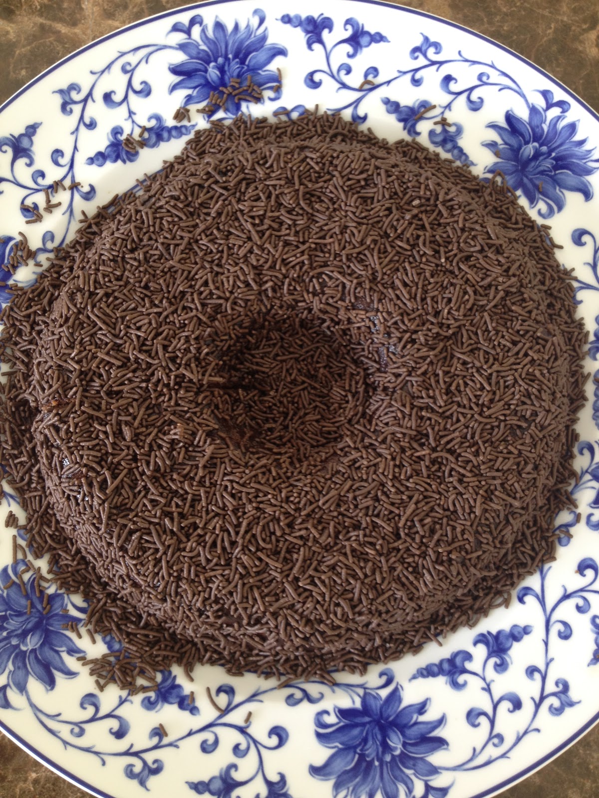 Retire do forno, deixe esfriar, desenforme e decore com chocolate granulado