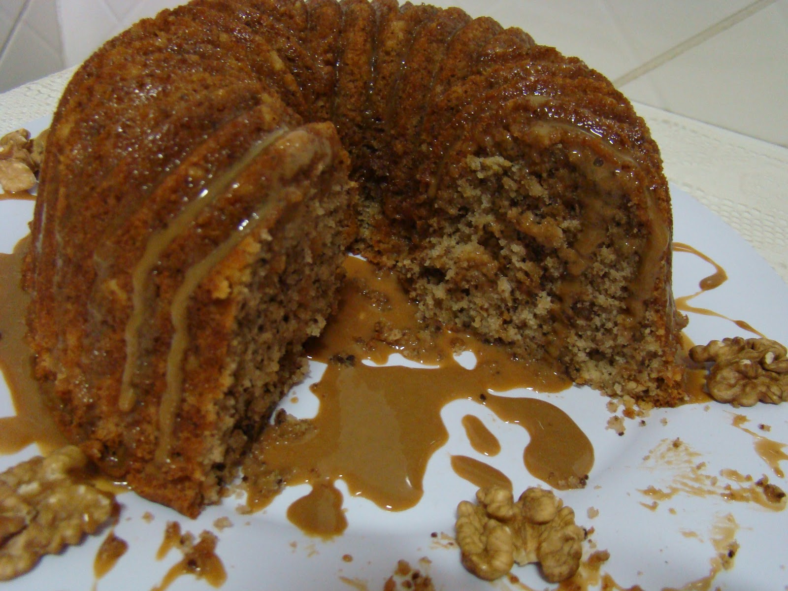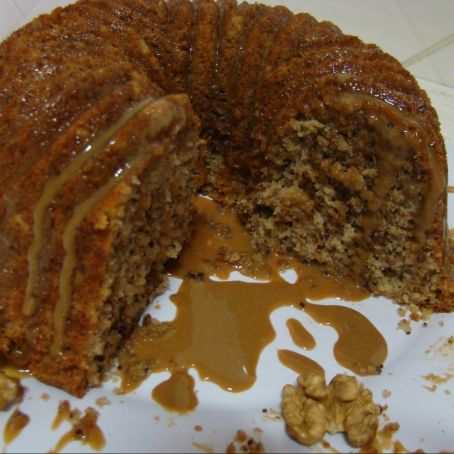 Bolo de nozes com calda de café