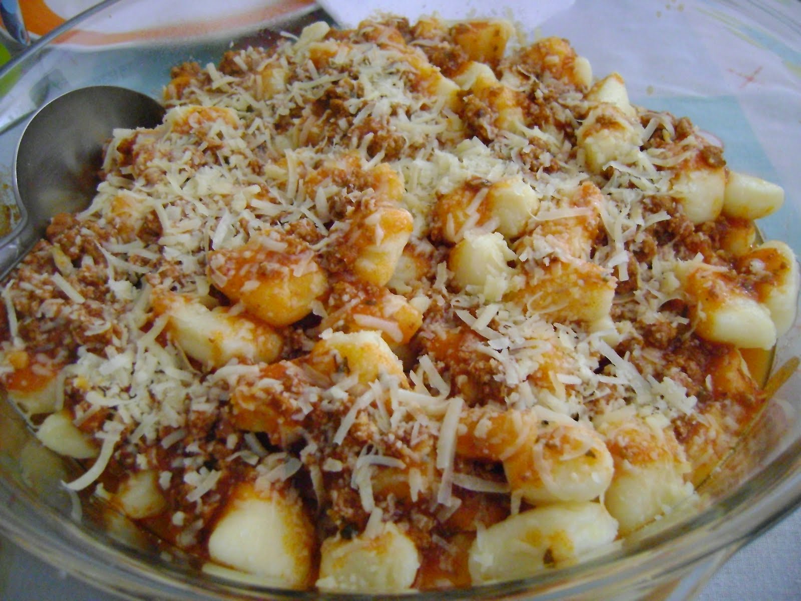 Despeje-o sobre o nhoque salpique queijo encima e leve ao forno para gratinar