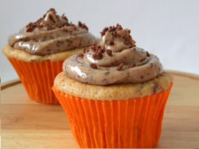Bata a manteiga na batedeira até ela ficar fofa. Acrescente o brigadeiro branco já frio e bata um pouco mais. Coloque o ovomaltine e mexa delicadamente. Se ficar muito duro acrescente uma colherinha de leite (eu não usei). Já pode cobrir o bolo ou os cupcakes. Se for usar um saco de confeitar, use um bico bem aberto, pois o ovomaltine entope o bico