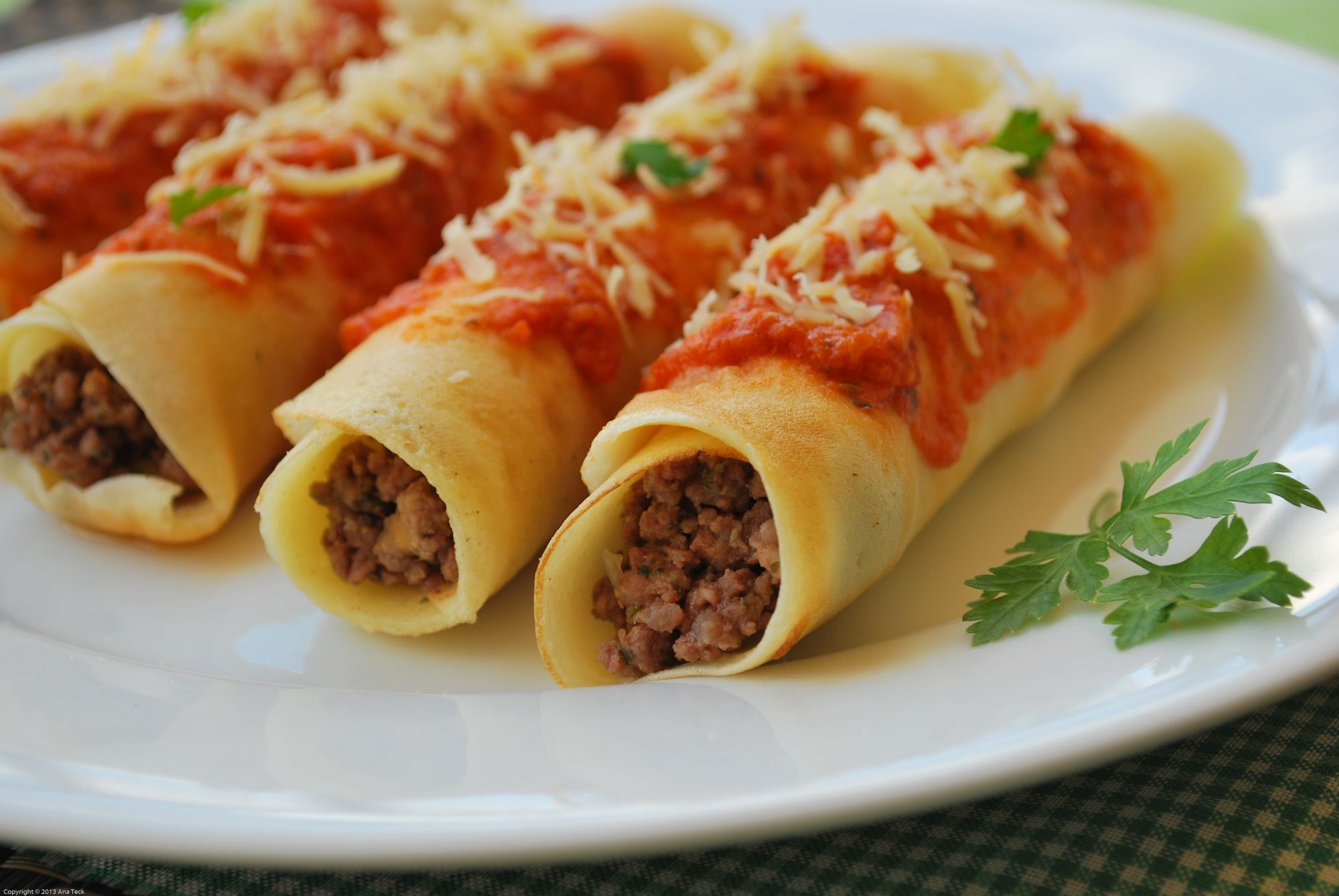 Em uma das extremidades da massa coloque um pouco de recheio e enrole