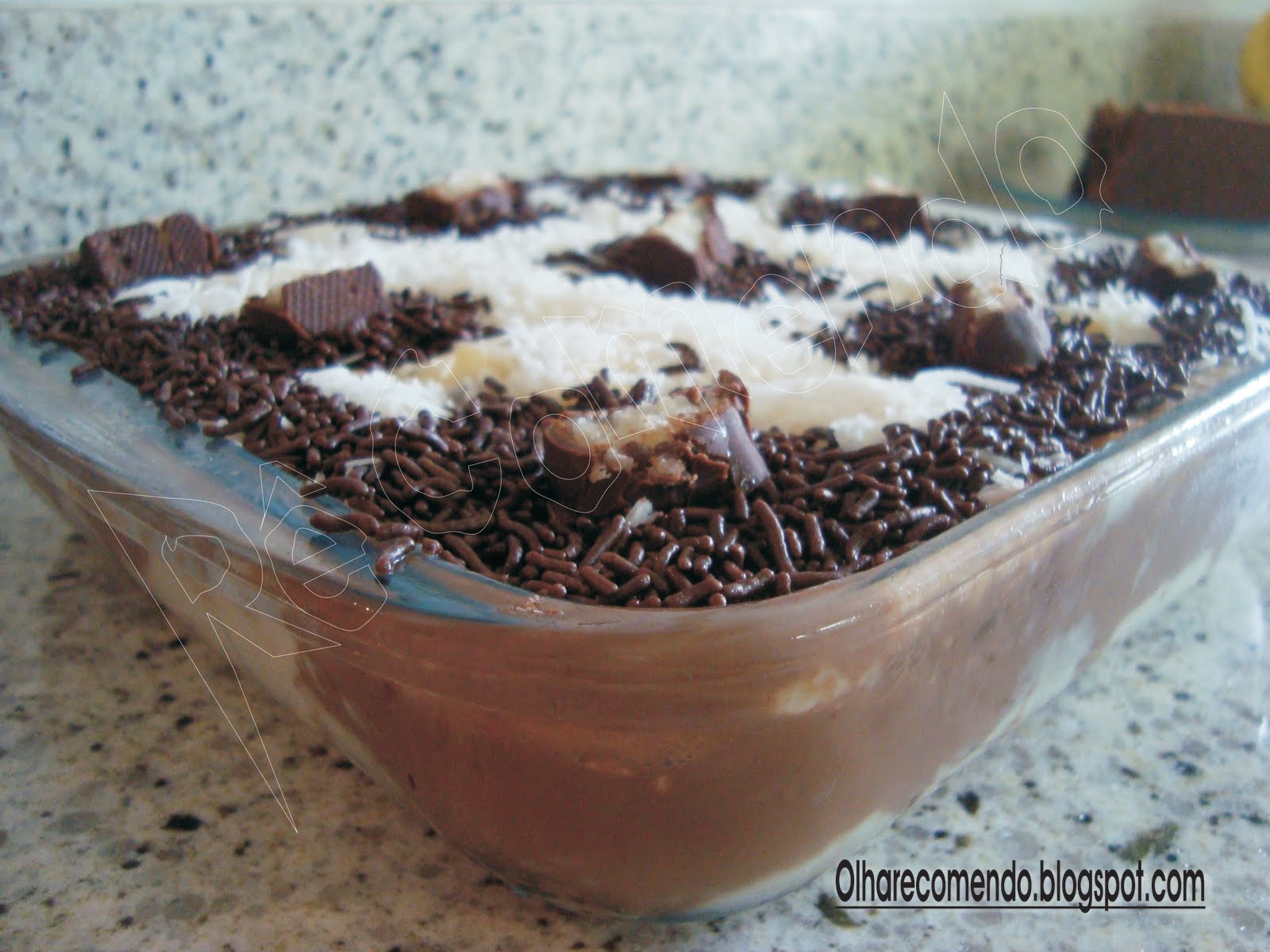 2. Coloque a cobertura em cima do creme já gelado e volte para a geladeira