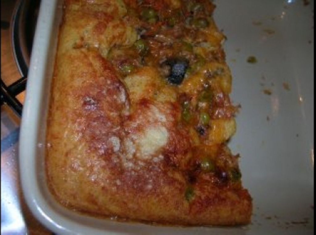 Misture todos os ingredientes e bata bem. Espalhe uma camada sobre a forma e em seguida uma camada de molho de sua preferência, e cubra com o restante da massa e o molho.