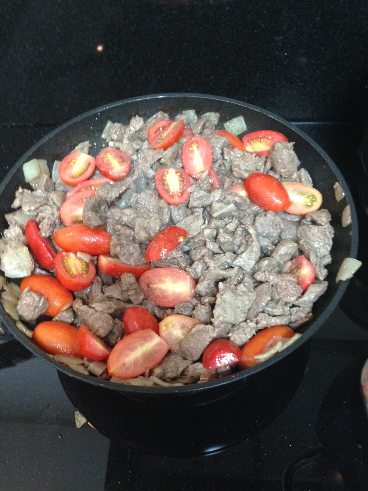 Se gostar, acrescente azeitonas verdes picadas junto com os tomatinhos.