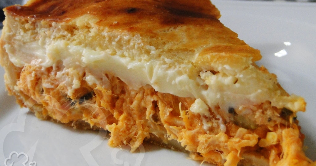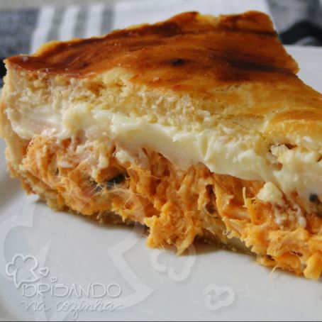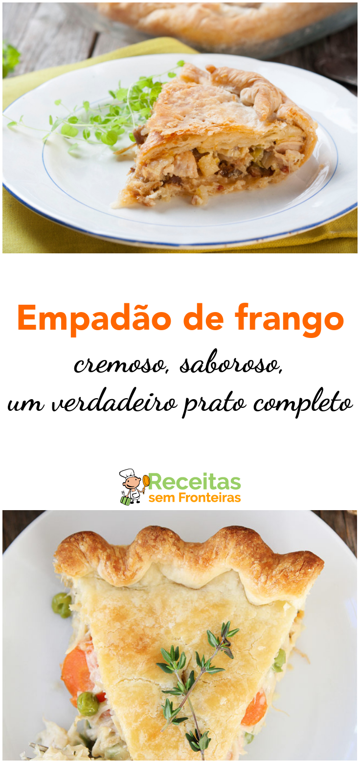 Adicione o recheio de frango (feito acima) e cubra com o restante da massa aberta com o rolo.