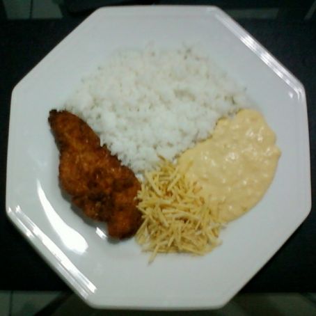 Servir com peito de frango à milanesa e arroz, ou batata palha.