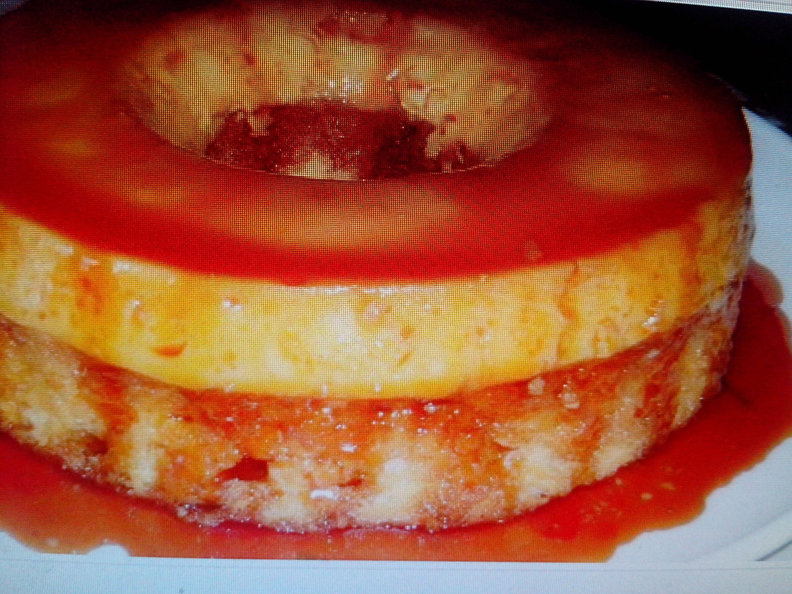A seguir coloque o pudim reservado e sobre ele a massa do bolo